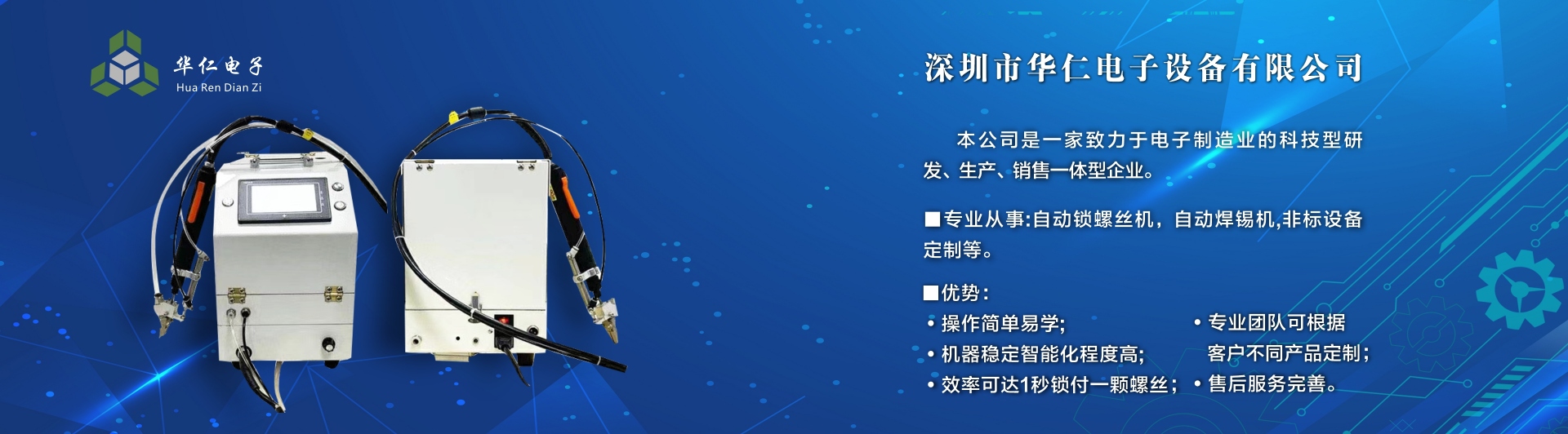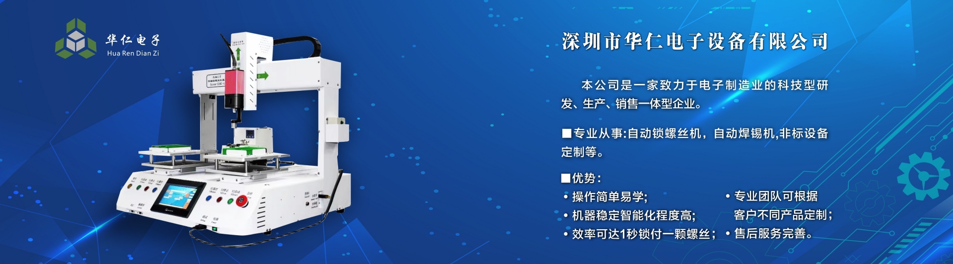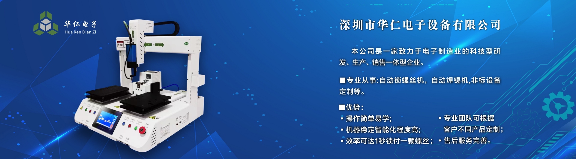 深圳市華仁電子設備有限公司是一家致力于電子制造業周邊設備的科技型研發(fā)、生產、銷售一體的企業,專業從事:自動鎖螺絲機;自動焊錫機;非標設備定制機等,公司長期以來在行業中積累了豐富的經驗,擁有專業的研發(fā)、技術、銷售支持工程團隊、各高級技術人才為客戶提供優(yōu)質產品和服務,同時不斷吸取國內外先進技術,更準確及時地為客戶提供優(yōu)質,性價比高的產品、公司以專業的售前、售中、售后服務贏得了客戶的信賴和好評,為客戶提供先進自動化設備一體式解決方案、